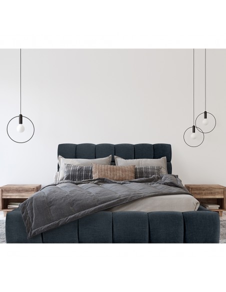Le lit BOSTON Noir est un meuble moderne au design unique, recouvert d'un tissu de haute qualité et très agréable au toucher, qui apportera calme et un air de luxe à votre chambre. La tête de lit solide et moelleuse offre un soutien aussi bien en position assise que lorsque vous vous reposez avec un livre. Un avantage supplémentaire est un coffre fonctionnel qui contient la literie.