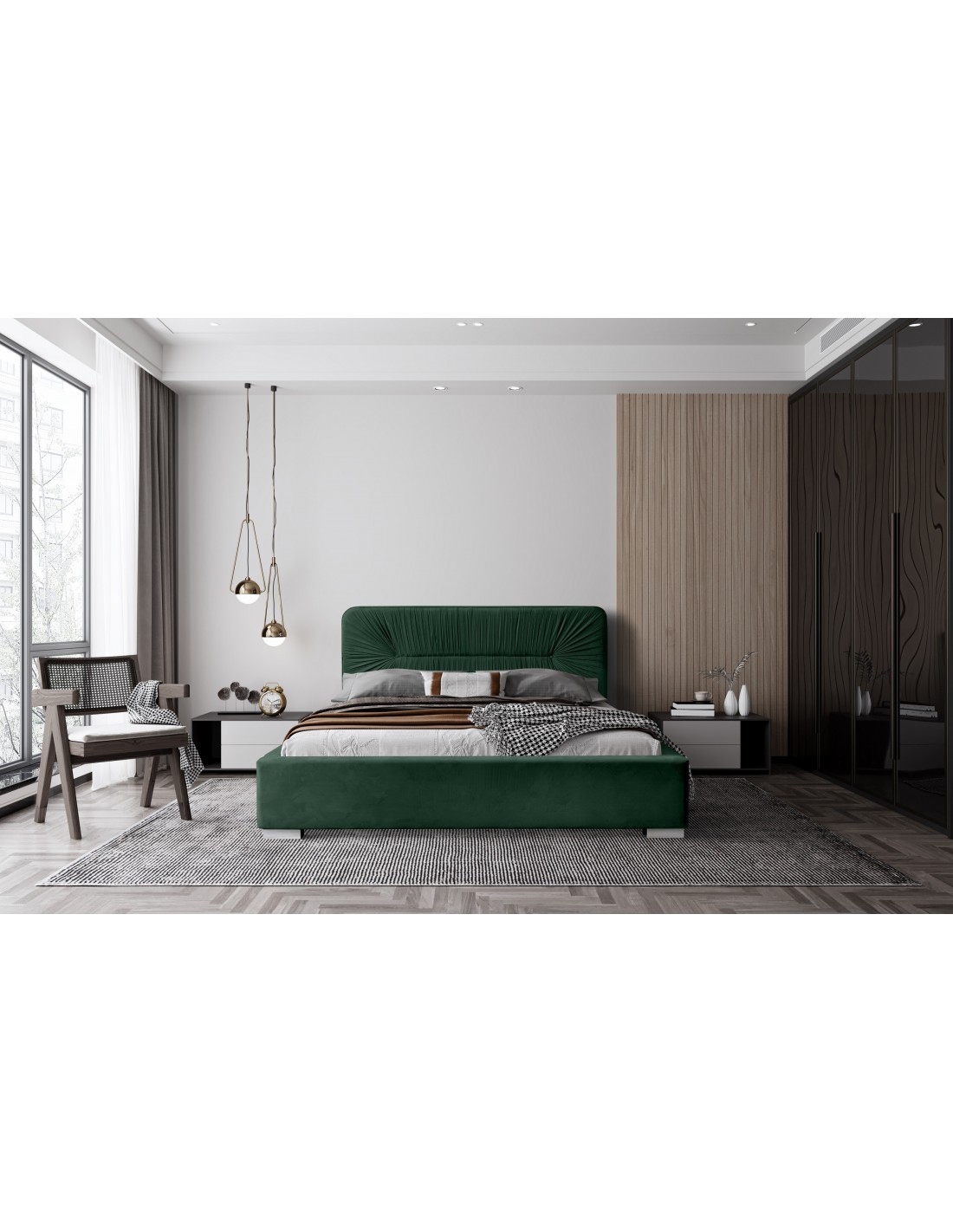 Le lit Alice Vert a une tête de lit haute matelassée avec un tissu très doux et élégant. Ce meuble est parfait pour une grande chambre spacieuse aux styles à la fois classiques et glamour. Une fabrication solide garantit la durabilité d'utilisation. Le bas du cadre est constitué de lattes en contreplaqué sur lesquelles vous pouvez installer un matelas classique ou un matelas à ressorts, selon ce que vous trouvez le plus confortable.