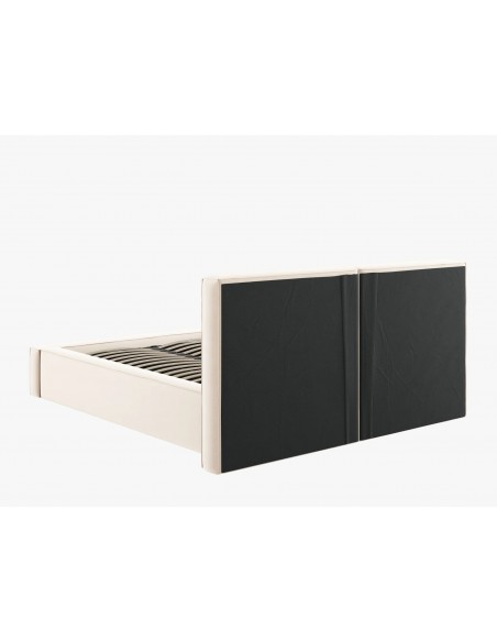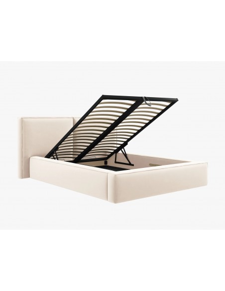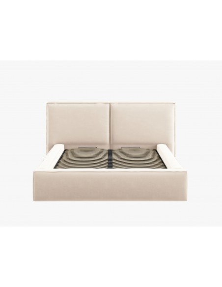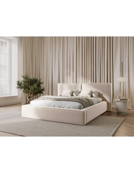Lit Coffre en Velours Beige Avec Tête de Lit Double, Jodie, Fabriqué en Europe