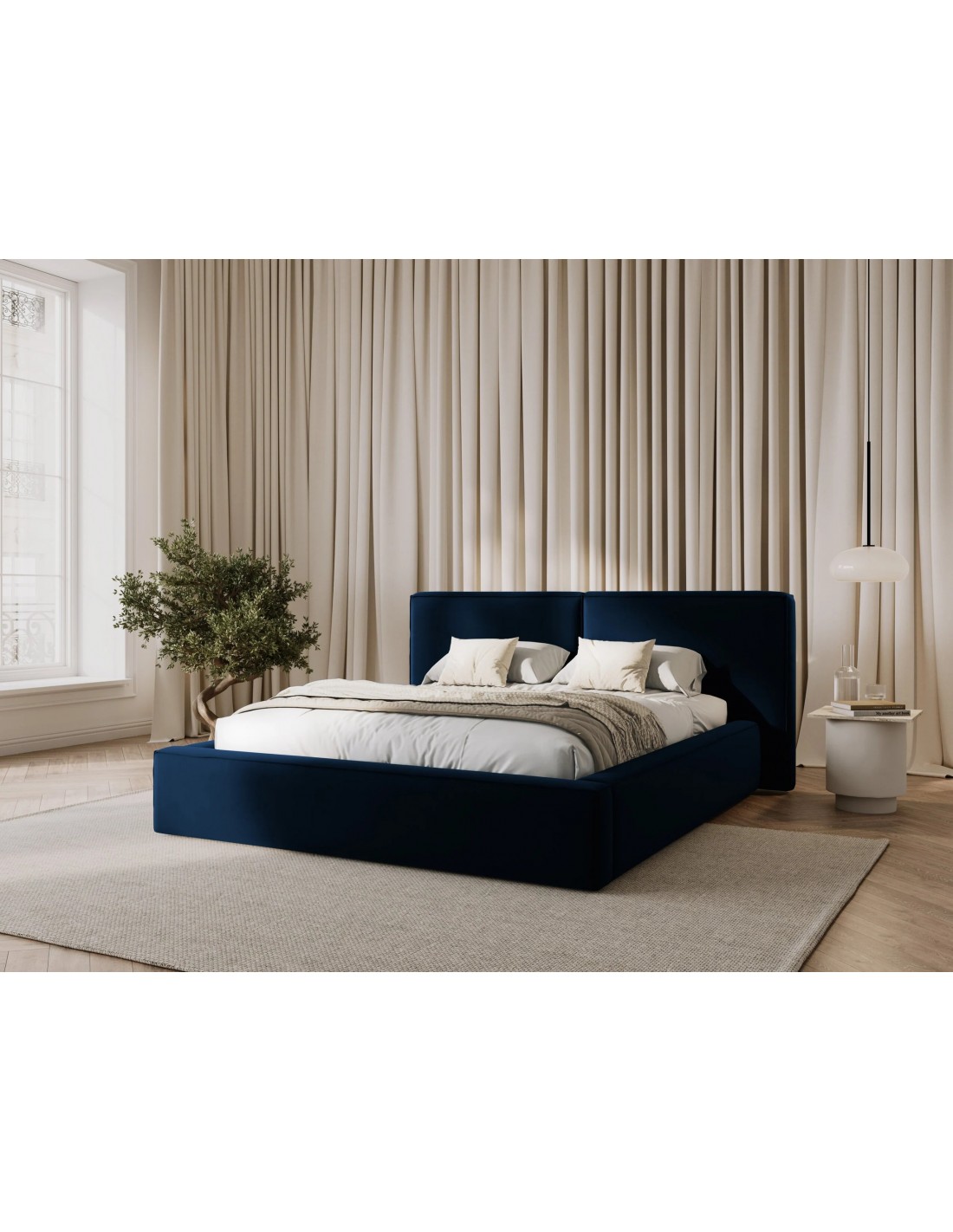 Lit Coffre en Velours Bleu Roi Avec Tête de Lit Double, Jodie, Fabriqué en Europe