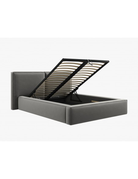 Le lit Jodie a été conçu en pensant au confort ultime de l'utilisateur. Le rembourrage doux et la conception ergonomique garantissent un soutien corporel, permettant une relaxation complète et une régénération pendant le sommeil. Chaque nuit passée dans le lit Jodie est un véritable plaisir. La grande tête de lit est particulièrement mise en valeur, contre laquelle vous pouvez confortablement vous appuyer. Dans le grand compartiment sous le cadre du matelas, vous pouvez ranger la literie et d'autres textiles.