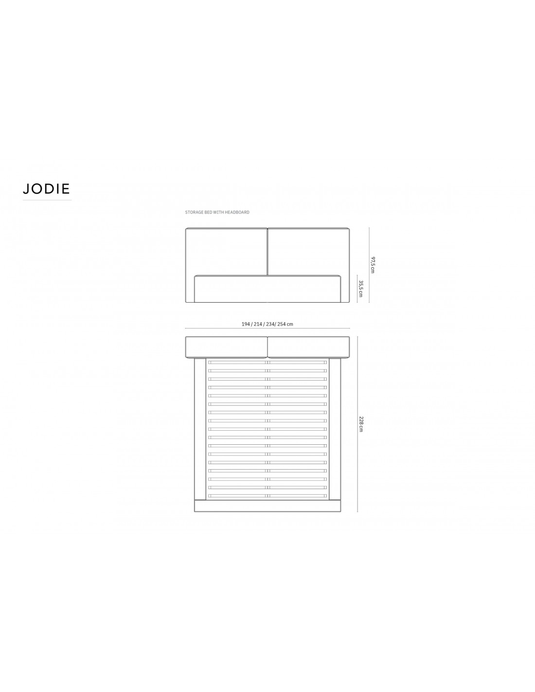 Le lit Jodie a été conçu en pensant au confort ultime de l'utilisateur. Le rembourrage doux et la conception ergonomique garantissent un soutien corporel, permettant une relaxation complète et une régénération pendant le sommeil. Chaque nuit passée dans le lit Jodie est un véritable plaisir. La grande tête de lit est particulièrement mise en valeur, contre laquelle vous pouvez confortablement vous appuyer. Dans le grand compartiment sous le cadre du matelas, vous pouvez ranger la literie et d'autres textiles.