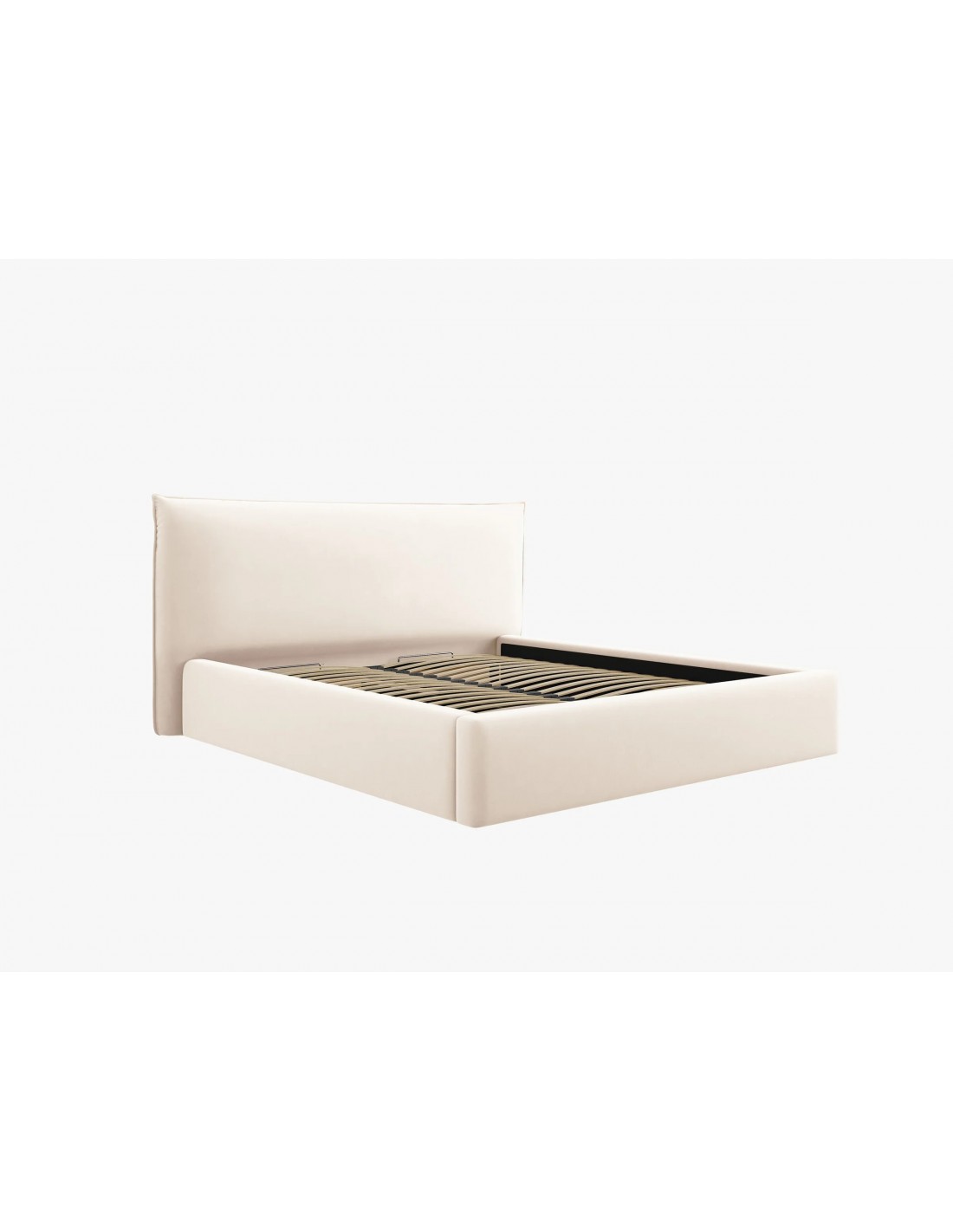 Lit Coffre en Velours Avec Tête de Lit, Couleur Beige Clair, Agate, Marque Micadoni