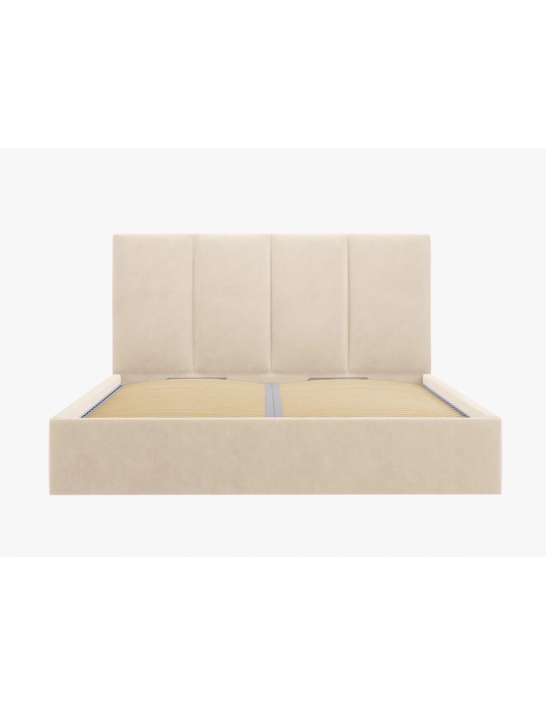 Lit Coffre en Velours Beige Avec Tête de Lit, Pyla, Fabriqué en Europe