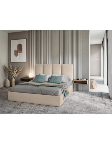 Lit Coffre en Velours Avec Tête de Lit, Couleur Beige, Pyla, Marque Micadoni