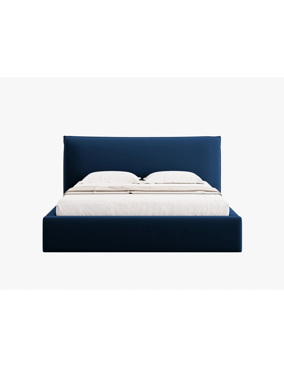 Lit Coffre en Velours Bleu Roi Avec Tête de Lit, Agate, Fabriqué en Europe