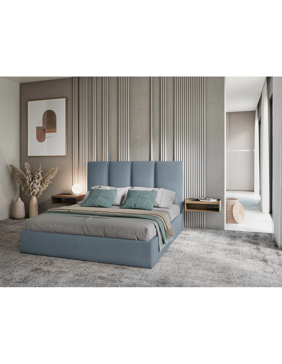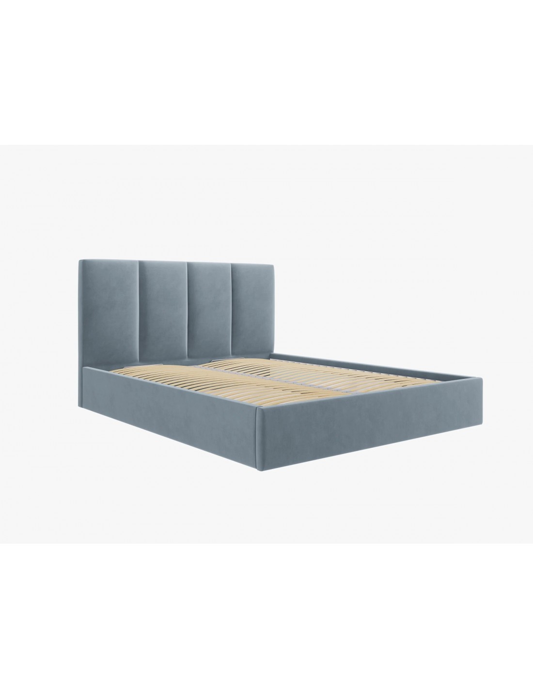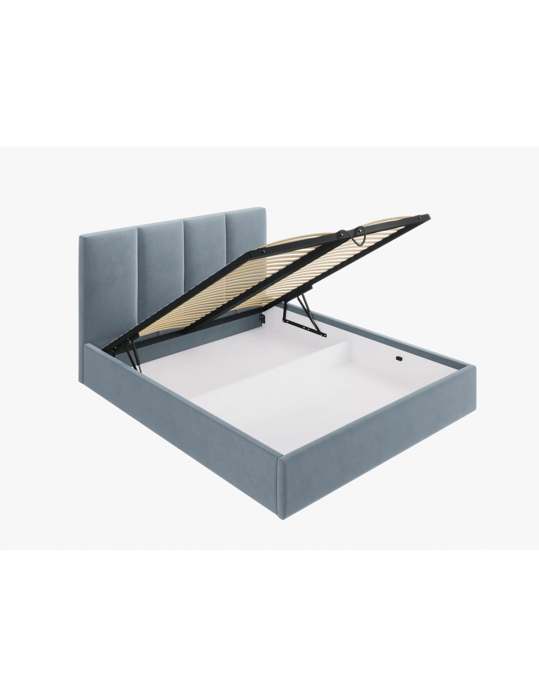 Lit Coffre en Velours Bleu clair Avec Tête de Lit, Pyla, Fabriqué en Europe