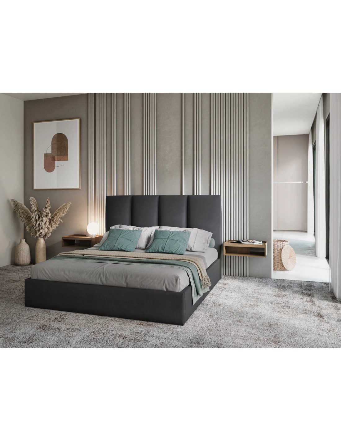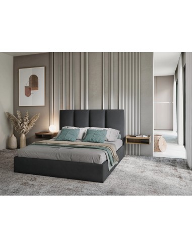 Lit Coffre en Velours gris foncé  Avec Tête de Lit, Pyla,  Fabriqué en Europe