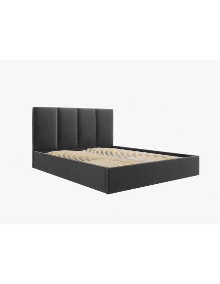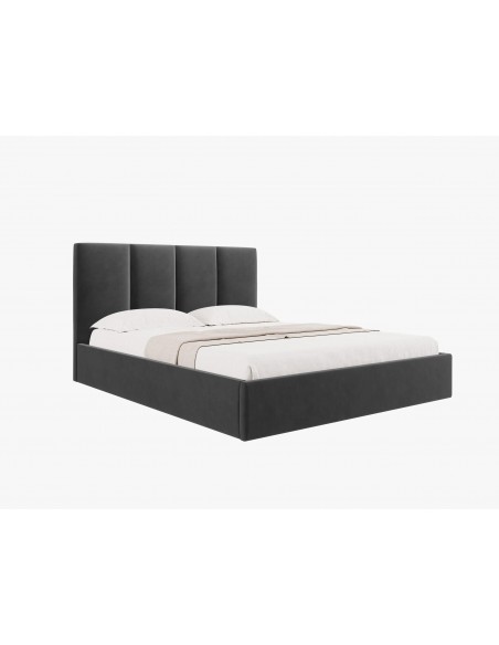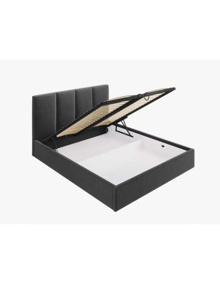 Lit Coffre en Velours gris foncé  Avec Tête de Lit, Pyla,  Fabriqué en Europe