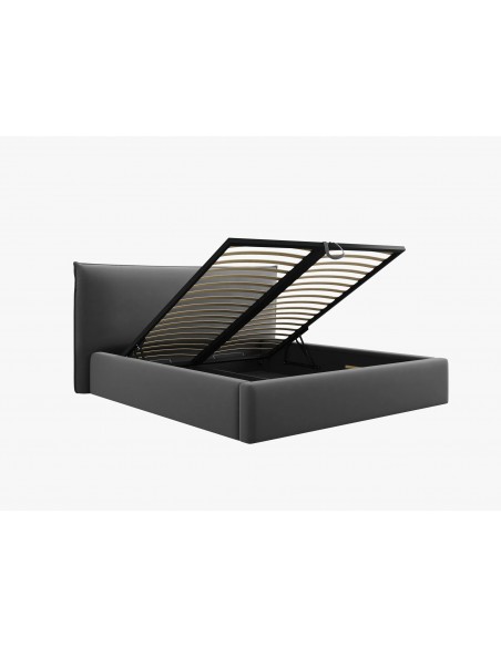 Le lit coffre Agate est un subtil mélange entre un style moderne et des fonctions très pratiques grâce à sa tète de lit rembourrée et son coffre facilement accessible.