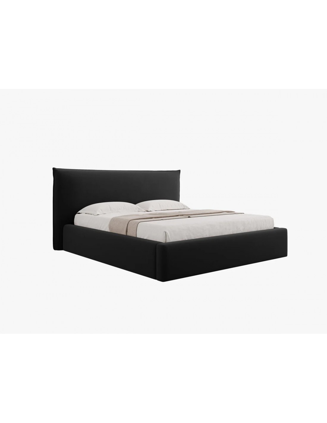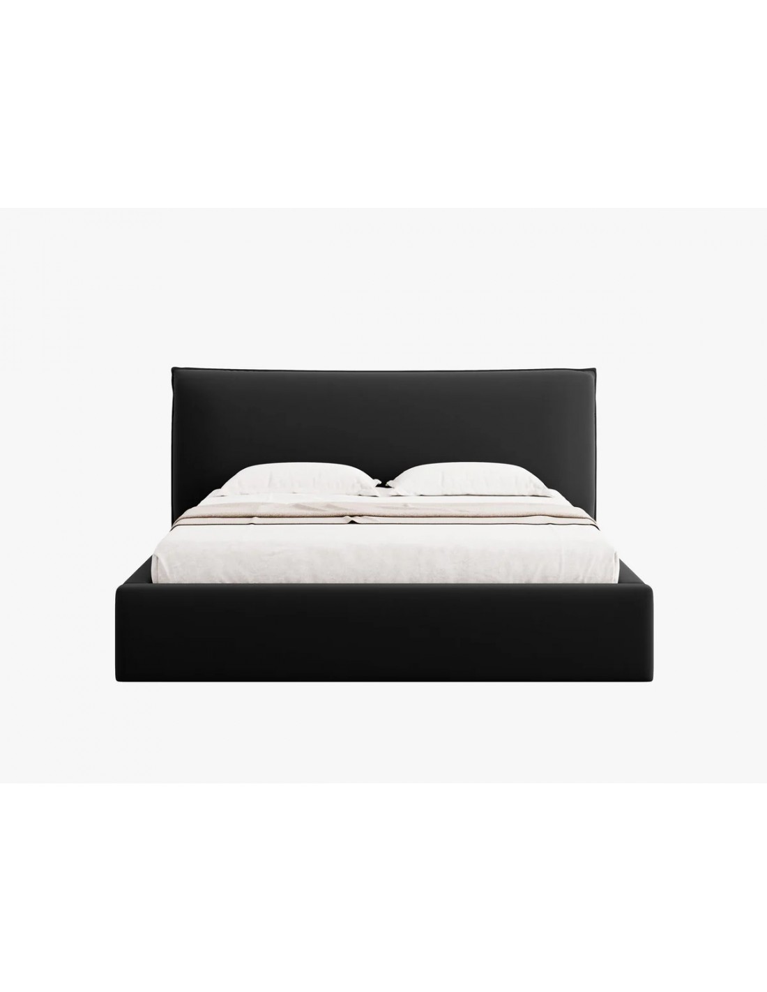 Lit Coffre en Velours Avec Tête de Lit, Couleur Noir, Agate, Marque Micadoni