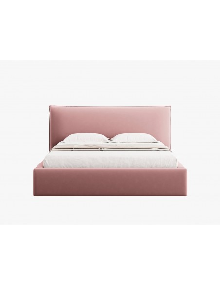 Lit Coffre en Velours Rose Avec Tête de Lit, Agate, Fabriqué en Europe