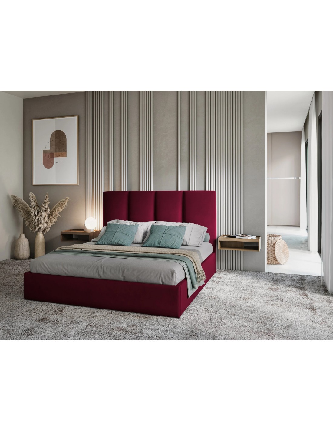 Lit Coffre en Velours rouge avec Tête de Lit, Pyla,  Fabriqué en Europe